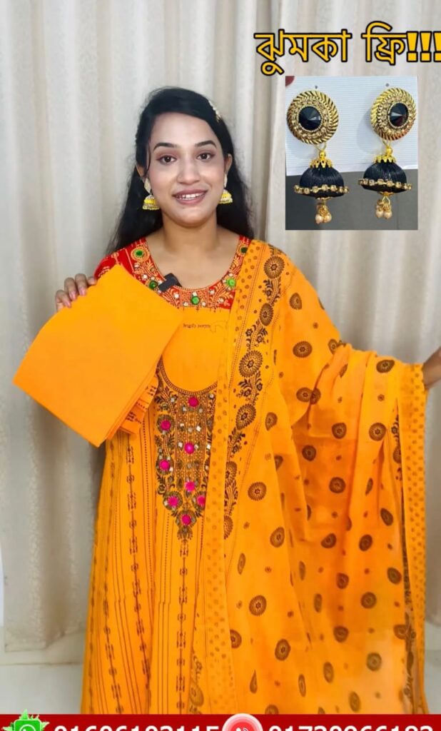 "স্ক্রিনে দেখানো কালার ছাড়া আমাদের কালেকশনে আরোও ৪০ টা কালার আছে, আপনি ইচ্ছা করলে আমাদের হোয়াটসঅ্যাপ নাম্বারে যোগাযোগ করে সেখান থেকেও পছন্দ করতে পারেন "